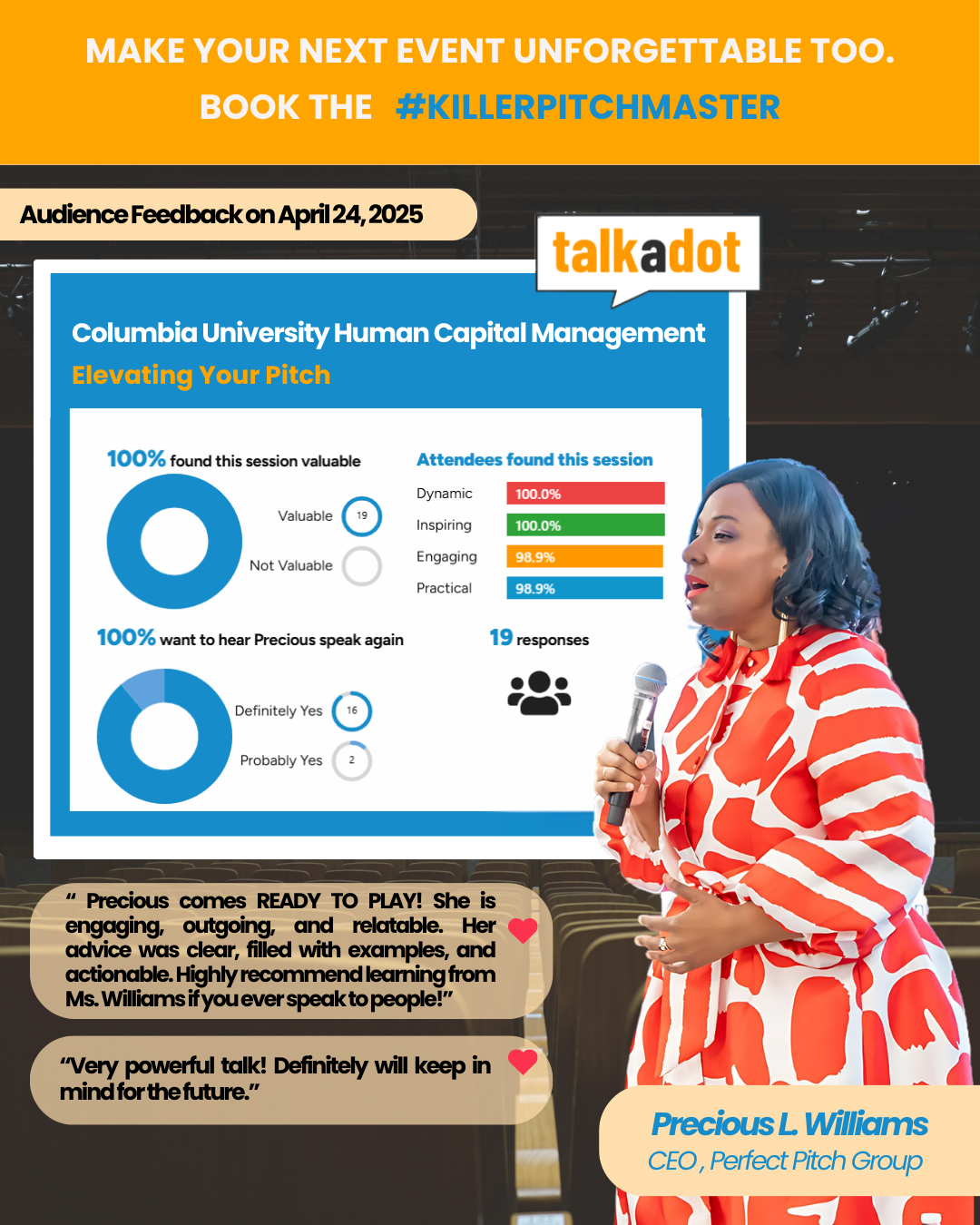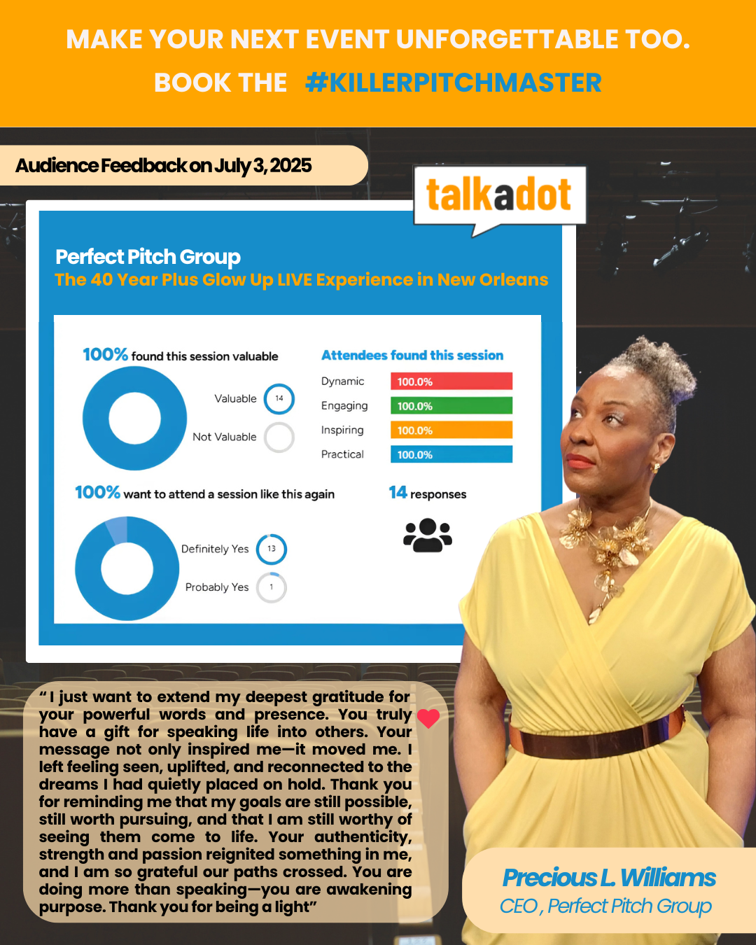 You’ve seen the results, the endorsements, and the undeniable impact Precious L. Williams has on every organization she touches. This isn’t just about a speech; it’s about unlocking your team’s full potential, closing the deals that matter, and dominating your market. Don’t let your competition get the edge.